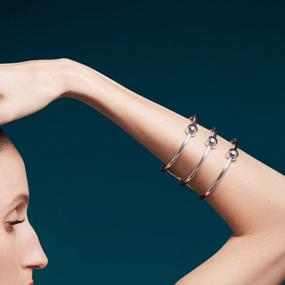 Браслет Pianegonda из коллекции Assoluto выполнен из серебра 925 пробы с тремя сферами и гальваническим покрытием родием. Диаметр браслета 6 см. Браслет-манжета Assoluto вдохновлён явлением электричества, которое в древнегреческой мифологии ассоциировалось с богиней Электрой. Сферы символизируют вечное движение электронов. Подобно электронам, сферы из серебра 925 пробы словно вращаются вокруг запястья, наполняя новой энергией космическую символику.
