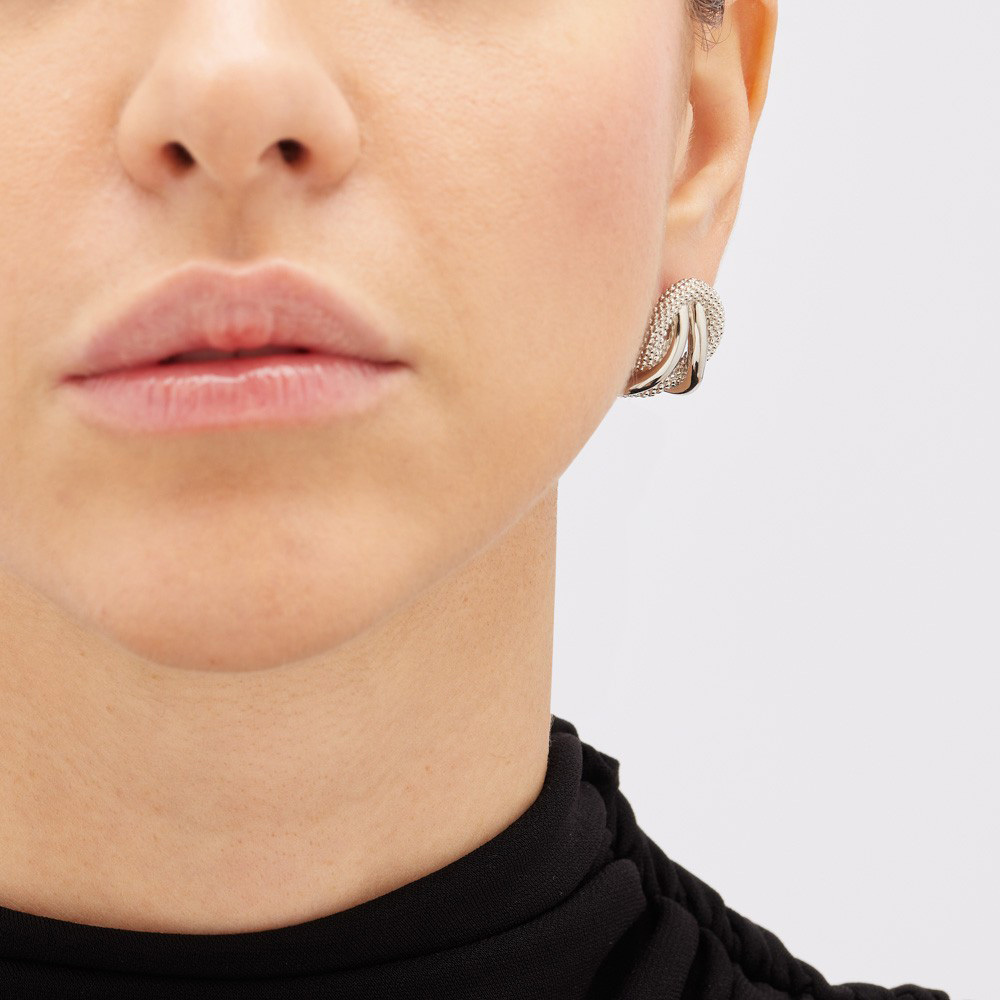 Длинные серьги Pianegonda из коллекции Foedus выполнены из серебра 925 пробы с узлом, сферической текстурой и классической застежкой-бабочкой.